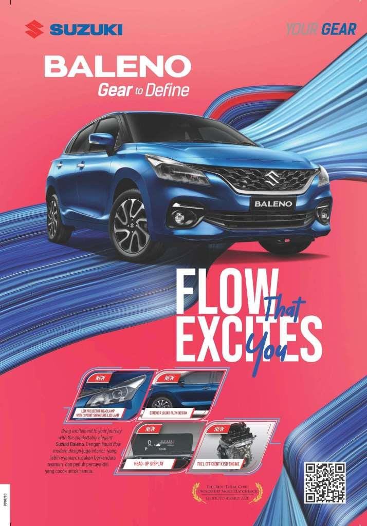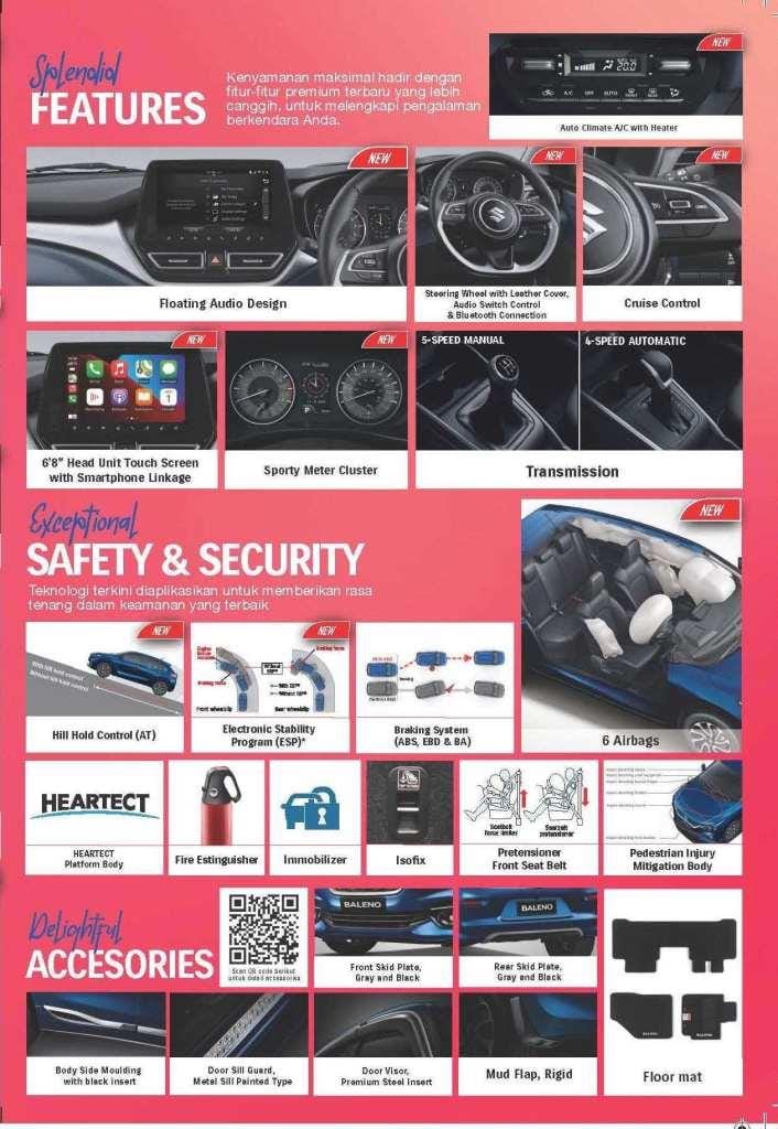 Suzuki New Baleno, Kembali hadir dengan fitur-fitur terbaik di kelasnya! Saatnya rasakan perpaduan kemewahan dan kenyamanan.