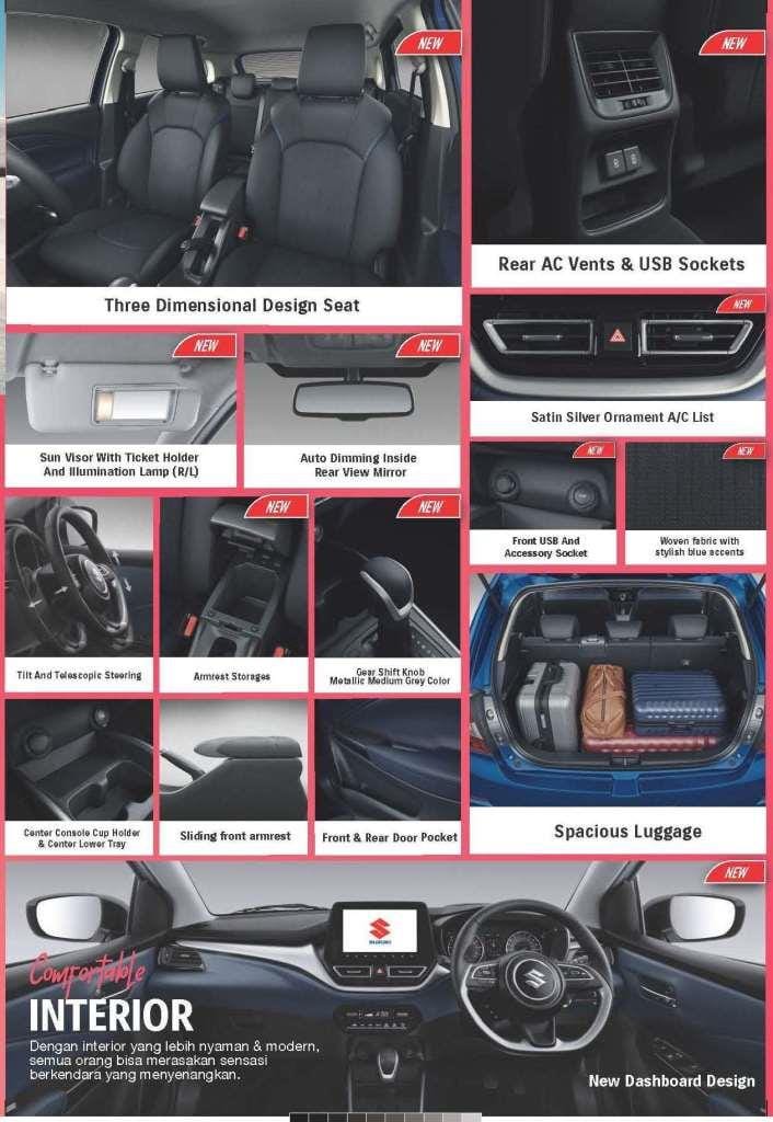 Perubahan interior terbilang minimalis dengan aksen baru di jok. Selain itu tidak ada yang signifikan. Toh, sejak dulu Baleno ini bisa dibilang memiliki fitur yang lengkap. Climate control, start/stop button, hingga sistem infotainment sudah terbilang mumpuni.